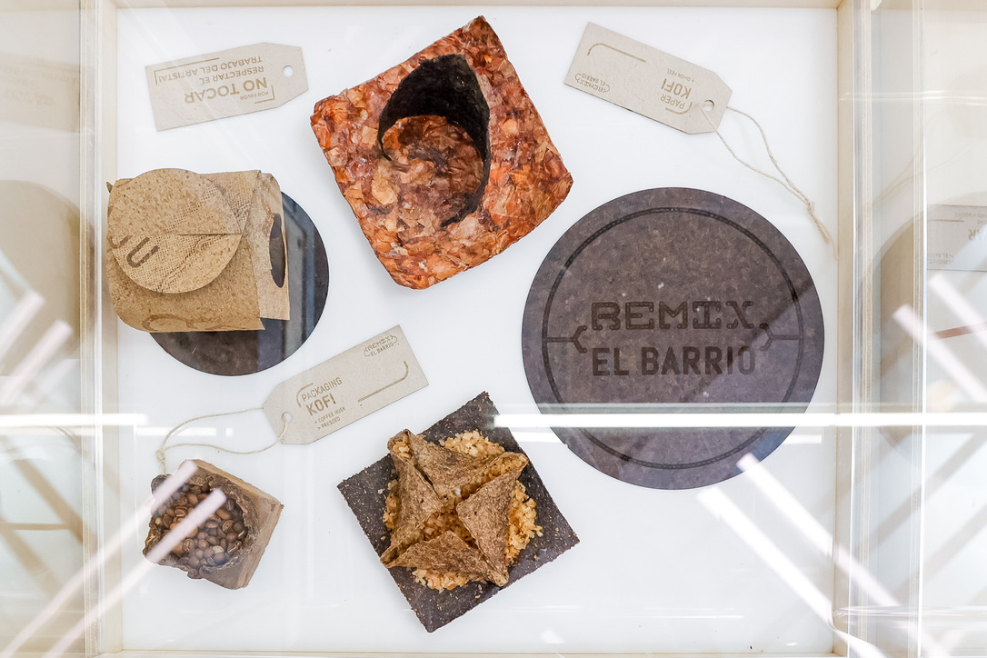 Remix EcoDesign es un colectivo de diseñadores y defensores de la economía local y circular que propone un nuevo paradigma productivo. Defienden la recogida y procesamiento de los residuos alimenticios, para reciclarlos en biomateriales, que a través de técnicas artesanales y de fabricación digital se plasman en nuevos productos, servicios y proyectos artísticos sostenibles como alternativa de consumo y convivencia.